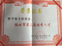 2016年被評(píng)為綏化市第三屆優(yōu)秀人才